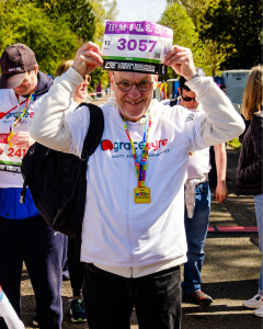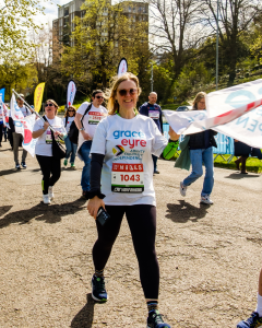 The first person to pass the finish for Grace Eyre was Lulu who had prepared for Brighton Miles by taking on a sponsored walk for Grace Eyre and then leading a series of weekend walks for others in the community. Lulu was determined to make it round in good time – and she did!